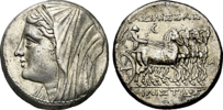 Aus Auktion 151Syrakus, Hieron II.16 Litrai, ca. 214 - 215 v. Chr.Kopf seiner Frau Philistis / Nike in Quadriga